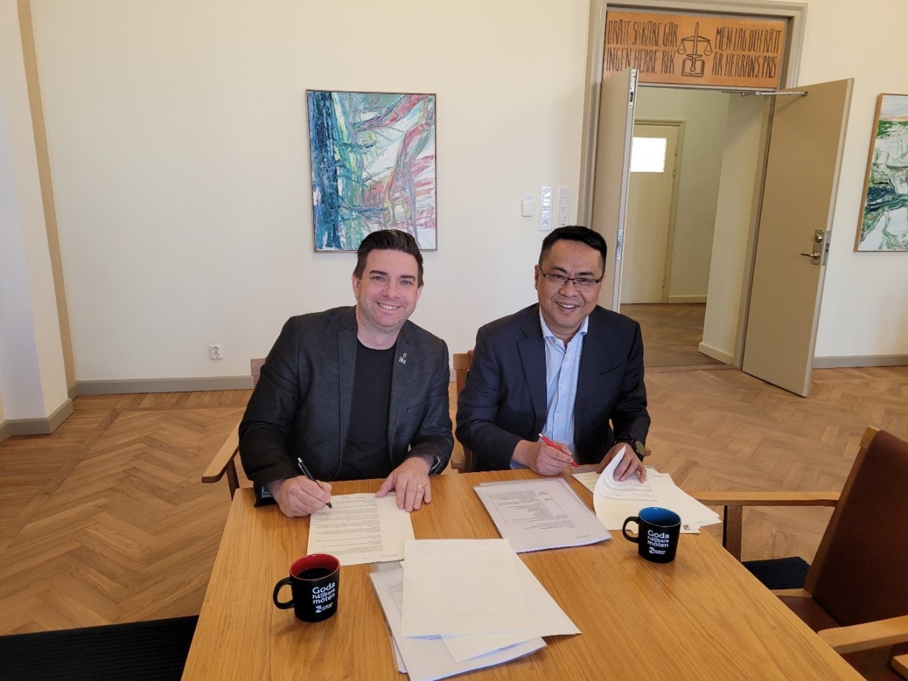 2022年3月22日,,,,,,,Stake官网材质欧洲子公司 Senior Material Properties AB和瑞典埃尔斯基斯蒂娜市市长,,,,,,,在埃尔斯基斯蒂娜市政厅市长办公室签署了Stake官网材质欧洲项目二期土地购置条约,,,,,,,条约涉及12万平方米土地,,,,,,,用于建设欧洲Stake官网二期下一代湿法基膜主线以及配套涂覆项目。。。。。。这是Stake官网材质在欧洲市场迈出的又一大步!