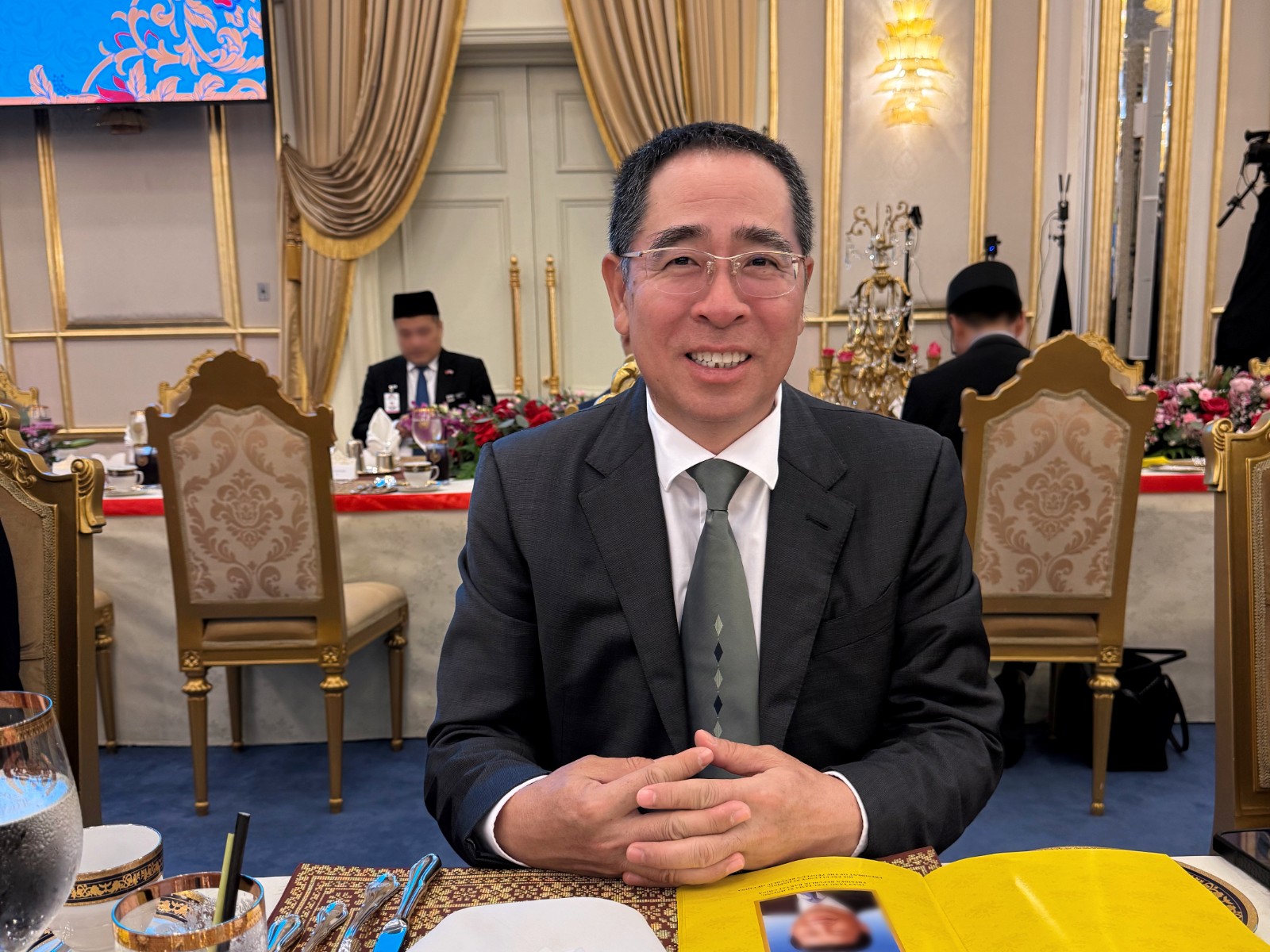 外地时间4月16日,,,,,,国家主席习近平应马来西亚最高元首易卜拉欣·伊斯干达约请,,,,,,对马来西亚举行国是会见。。。。。。。作为外地的中资新能源企业代表,,,,,,Stake官网材质董事长陈秀峰受邀加入在马来西亚国家王宫举行的国是仪式,,,,,,并出席了欢迎午宴。。。。。。。